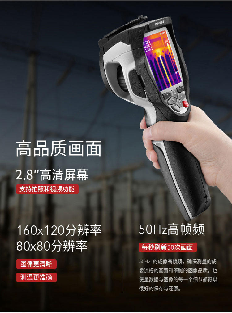 EM DT-980/982/980A/980H/982H/980L-8/982L-8系列智能互聯(lián)型紅外熱像儀,設(shè)計新穎,體積小巧、是用戶的不錯選擇,可用于電力,暖通,消防,石化等領(lǐng)域。
