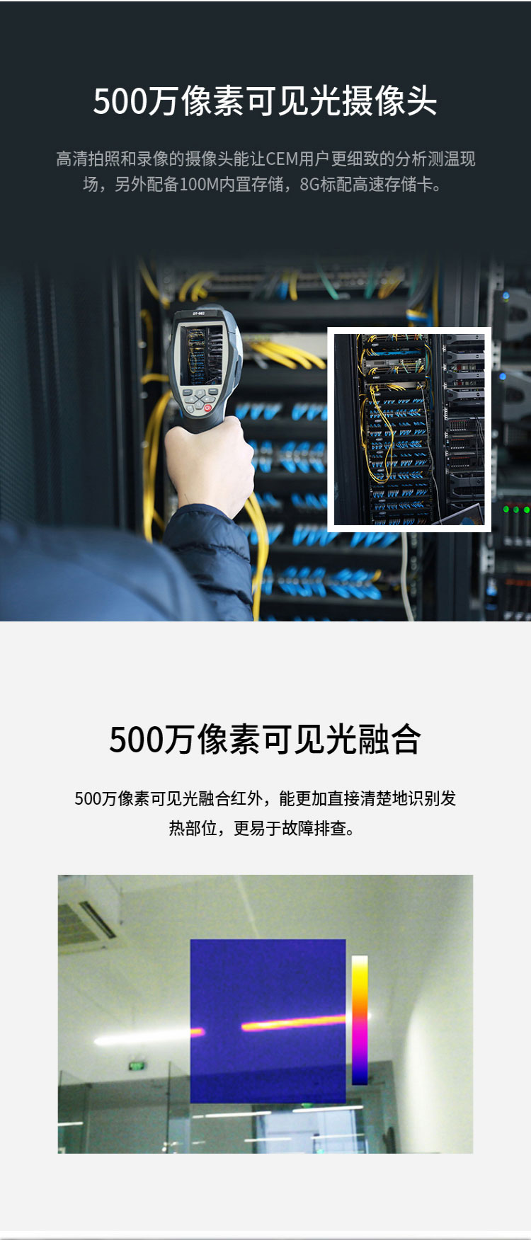 產(chǎn)品特性 1、更小的空間分辨率IFOV ;2、50Hz圖像幀頻; 3、精確測溫和高清紅外成像﹔4、32倍連續(xù)數(shù)字變焦; 5、強(qiáng)大的區(qū)間鎖定﹔6、高低溫自動追蹤; 7、500萬像素可見光攝像頭;8、500萬像素可見光融合;9、免費而強(qiáng)大的專業(yè)分析軟件。 10.AUF紅外熱成像和可見光自動融合功能11.靈巧緊湊的設(shè)計,2米防摔