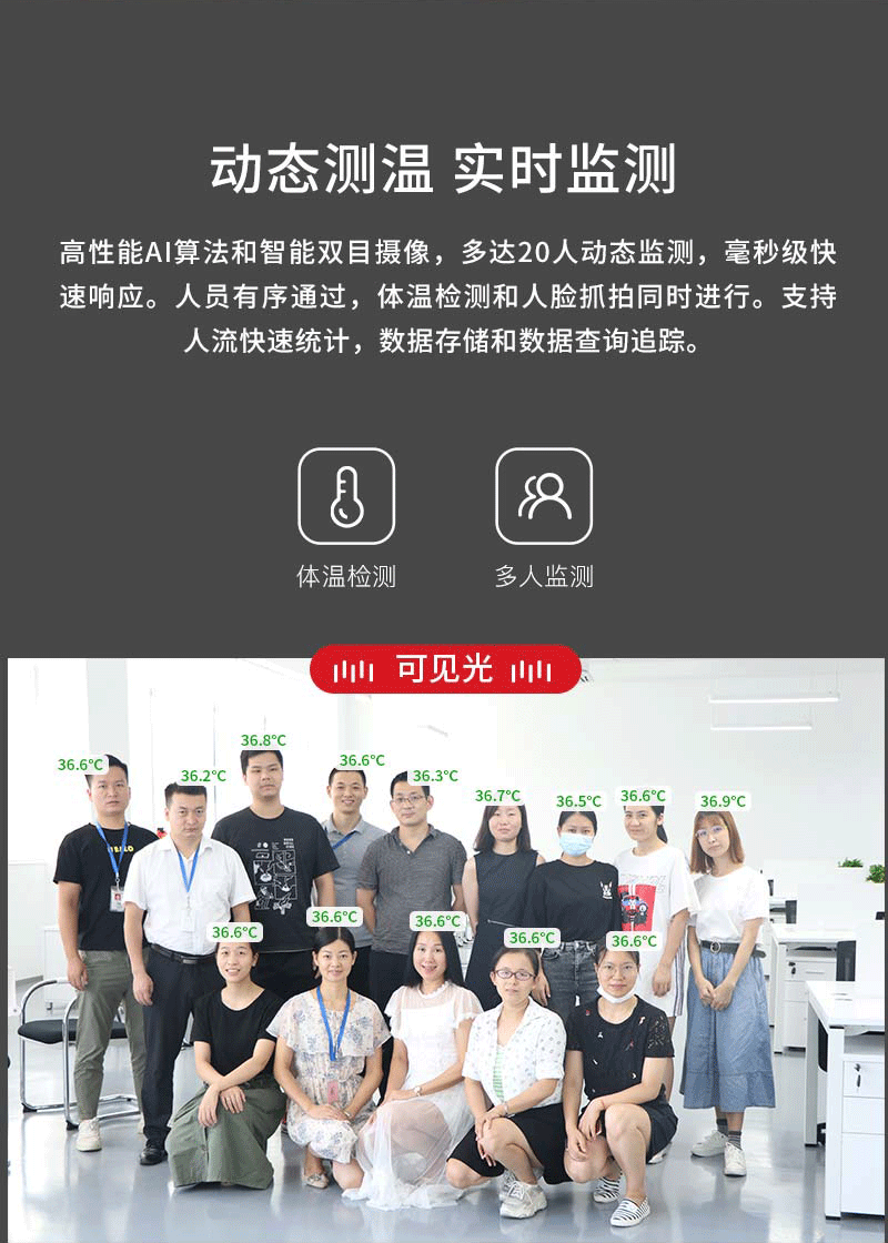 ·被測(cè)人員要求:戶外陽(yáng)光照射后,或者劇烈運(yùn)動(dòng)后,需在室內(nèi)環(huán)境平靜適應(yīng)5分鐘后進(jìn)行測(cè)試;人員從戶外場(chǎng)景進(jìn)入室內(nèi),建議經(jīng)過回廊緩沖至少10秒鐘后,再步入檢測(cè)位置,如果室內(nèi)外溫差較大時(shí),建議在室內(nèi)停留2~3min再行檢測(cè);確保待測(cè)人員整個(gè)面部處于設(shè)備攝像視野內(nèi),同時(shí)面部及額頭不能被遮擋(帽子、圍巾、墨鏡、面具、退燒貼等可能遮擋面部的物件,建議先提前摘下,適應(yīng)0.5-1分鐘后再進(jìn)行測(cè)試。)